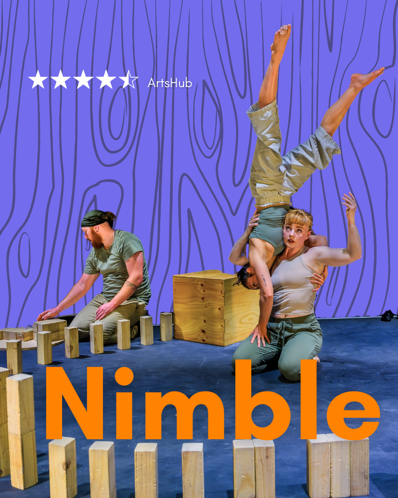 Tasmania’s own ROOKE, brings us all a little closer once more, right to the edge of our seats. Nimble plays the line between tension and joy, risk and release. Blocks, boxes, and acrobats will be stacked and balanced, and belly laughs will be had.