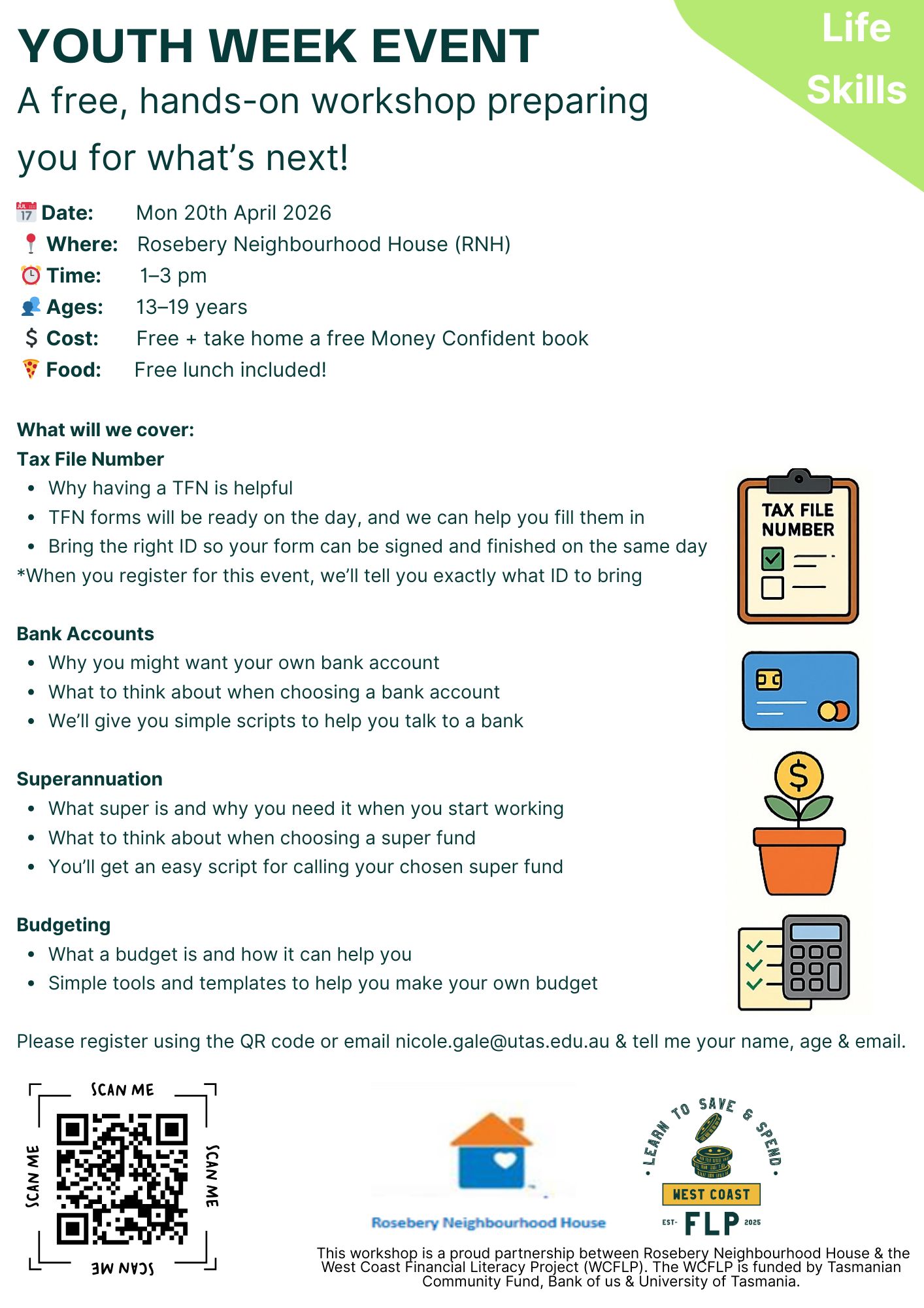 Join us for Youth Week on the 20th April at the Rosebery Neighbourhood House for a super practical Get Ready Skills Day!
