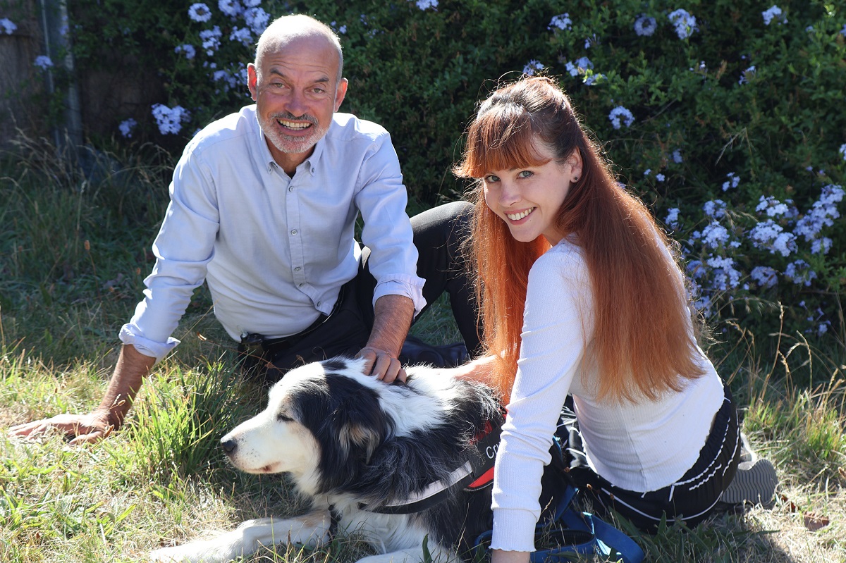 Photo of Deputy Premier Guy Barnett with Lanna Story and her dog Cruze supplied by the state government